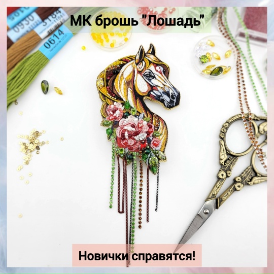Добавим бисер, бусины, кристаллы и цепочки, чтобы брошь заиграла объёмом, динамикой и блеском;