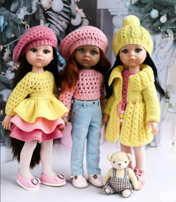 •Рекомендуемая пряжа: «Gazzal baby wool» (40 % merino wool, 20% cashmere type polyamide, 40% acrylic) в 50 г. - 175 м, «Drops baby merino» (100 % merino wool) в 50 г. - 175 м, «Alize baby wool» (40 % шерсть, 20% бамбук, 40% акрил) в 50 г. - 175 м., "Пехорка. Детский каприз" (50 % мериносовая шерсть, 50 % фибра) в 50 г. - 225 м, или другая аналогичная по метражу пряжа Можно связать из пряжи «Yarn Art Christmas» в 50 г. – 142 м. (100% полиамид) Расход пряжи на тунику из шерсти – 13-15 г., на тунику из «Yarn Art Christmas» – 25 г., на берет из шерсти – 8-10 г., на берет из «Yarn Art Christmas» – 15-17 г., на платье из шерсти – 45 г., на платье из «Yarn Art Christmas» – 60 г., на кардиган – 30 г., на шапку с косами – 12 г. Спицы №1,5, №2